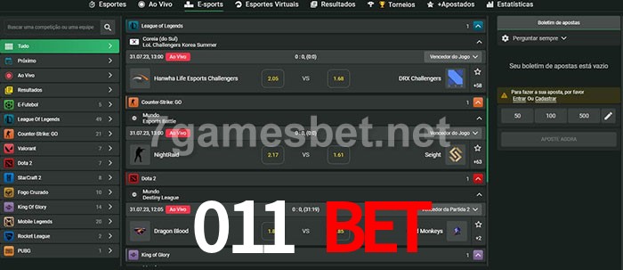 O 011 bet oferece uma grande seleção de opções de apostas em e-sports com probabilidades competitivas